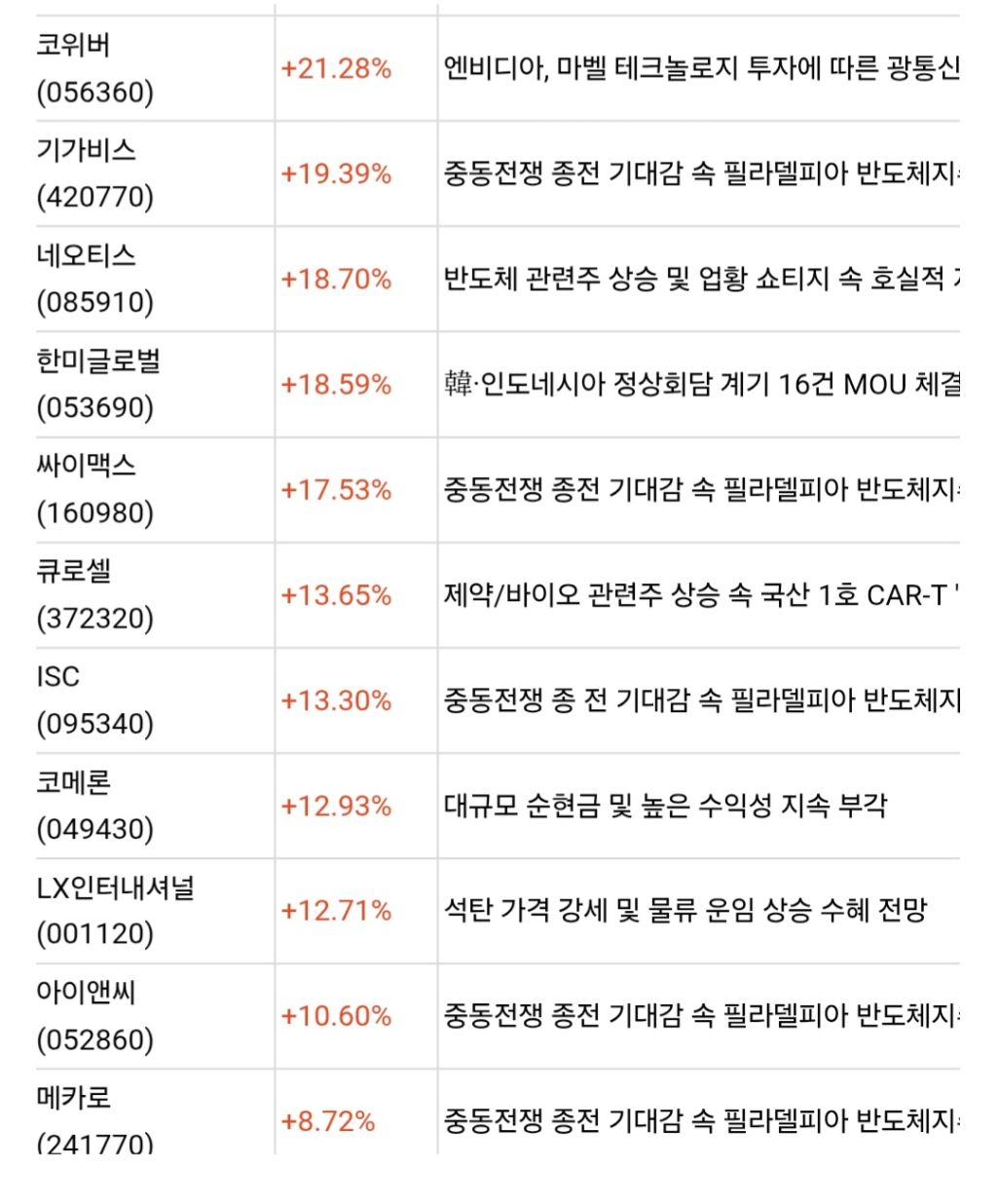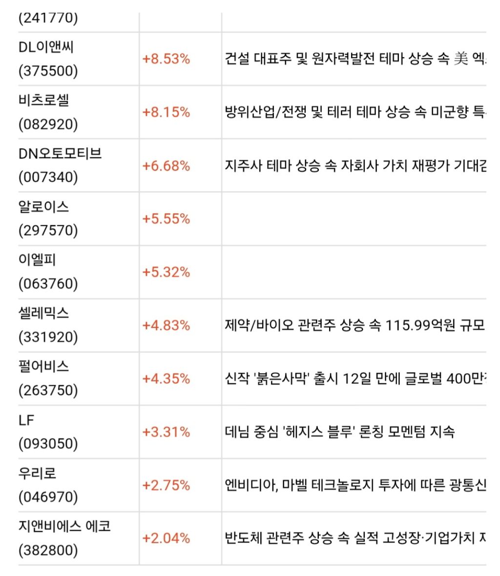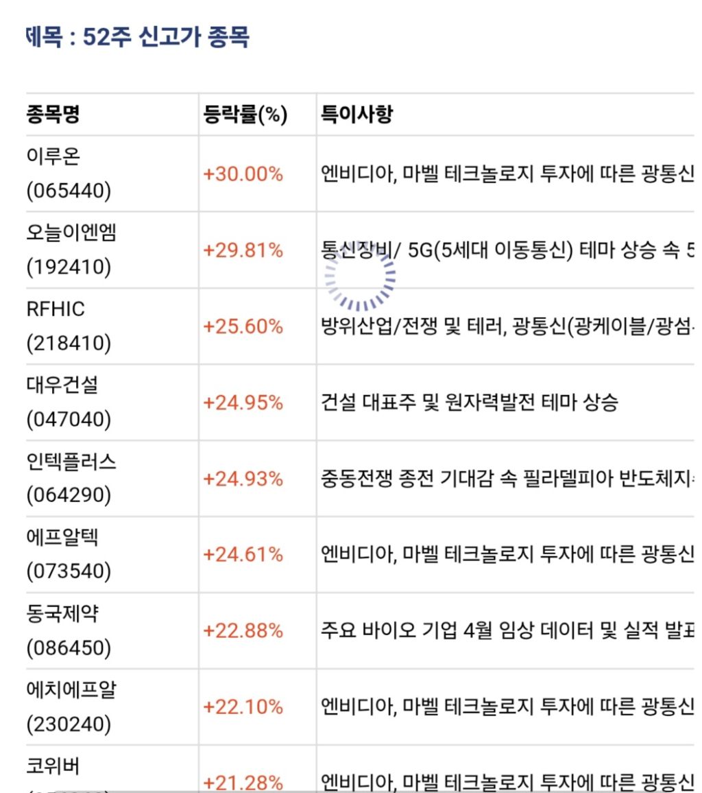 52주신고가 작성자SEJONG|작성시간26.04.01|조회수584 목록 댓글 2 글자크기 작게가 글자크기 크게가 다음검색 현재 게시글 추가 기능 열기 북마크 공유하기 신고 센터로 신고 댓글 댓글 2 댓글쓰기 답글쓰기 댓글 리스트 작성자호박단지 | 작성시간 26.04.02 new 감사합니다 작성자녹음 | 작성시간 26.04.02 new 감사합니다.코스닥 종목이 강세네요. 댓글 전체보기
