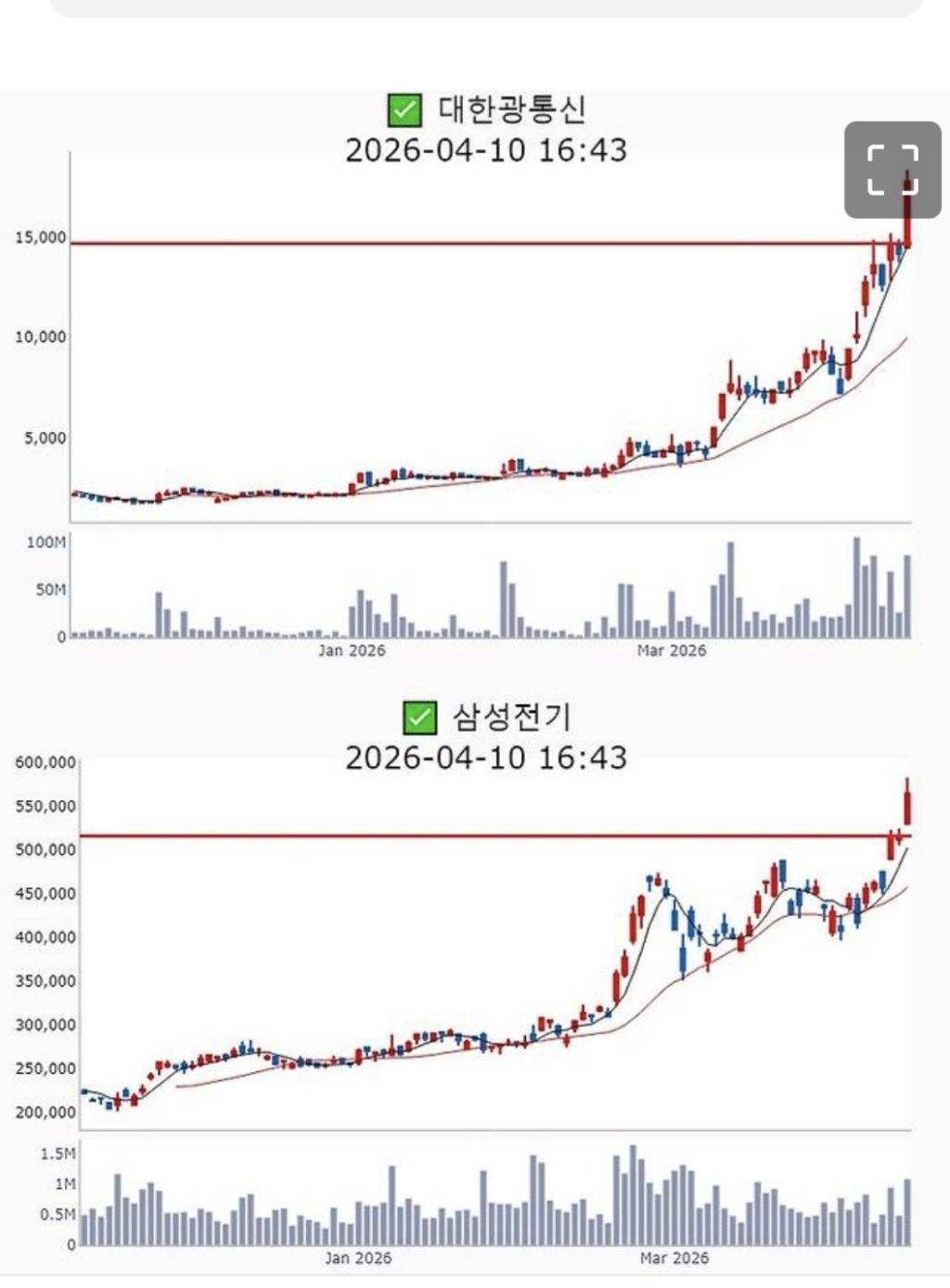 저는 삼전에 거의 몰빵 하다가 대한광통신에 대해서는 놓친것 같은데 아쉽 습니다.