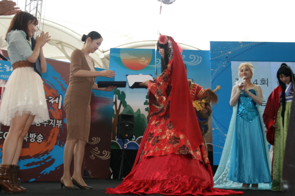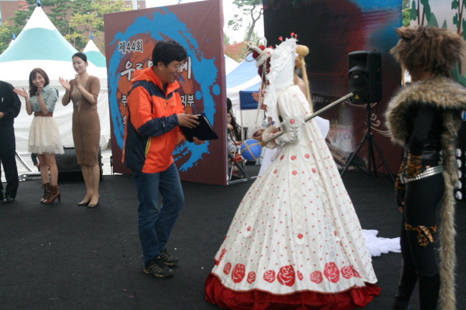 케릭터(코스튬플레이)전국대회가 열리는 사회자의 모습 인데요