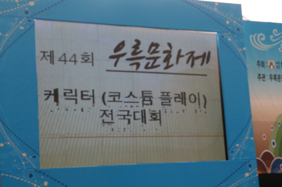 무대 자막에는 제44회우륵문화제 케릭터(코스튬플레이)전국대회