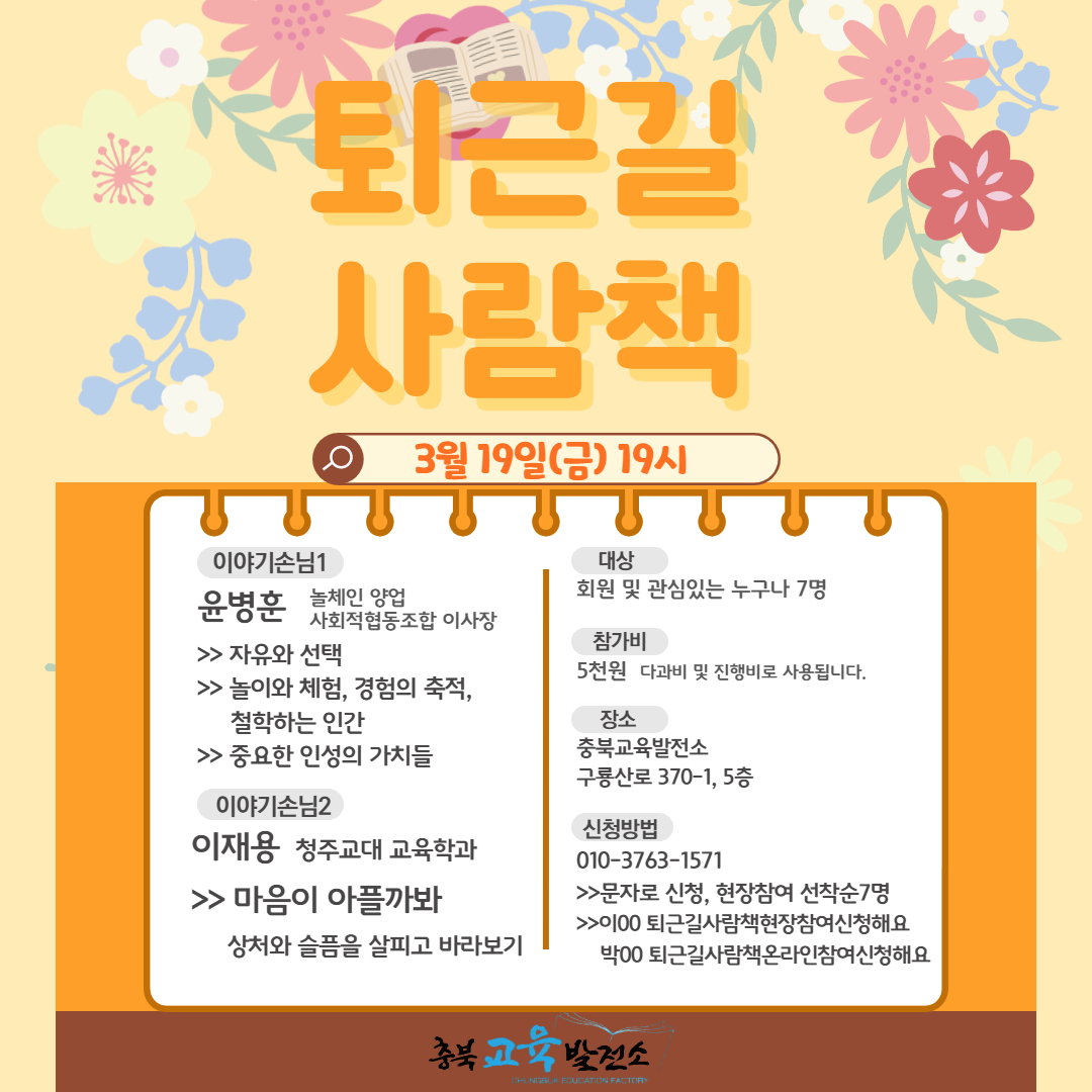 신청 : 문자신청 010-3763-1571 (예 : 김교육, 사람책 현장참여 신청합니다./ 박교육, 사람책 온라인참여 신청합니다.)