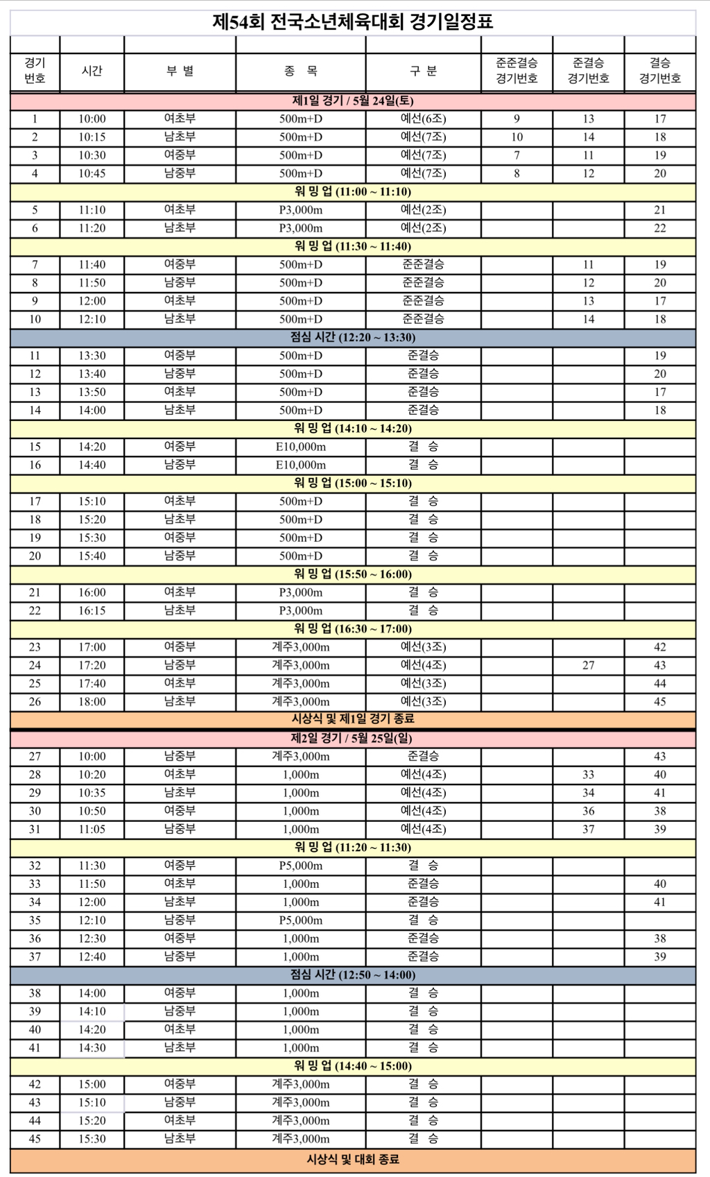 제54회 전국소년체육대회 경기일정표 및 페어링 안내