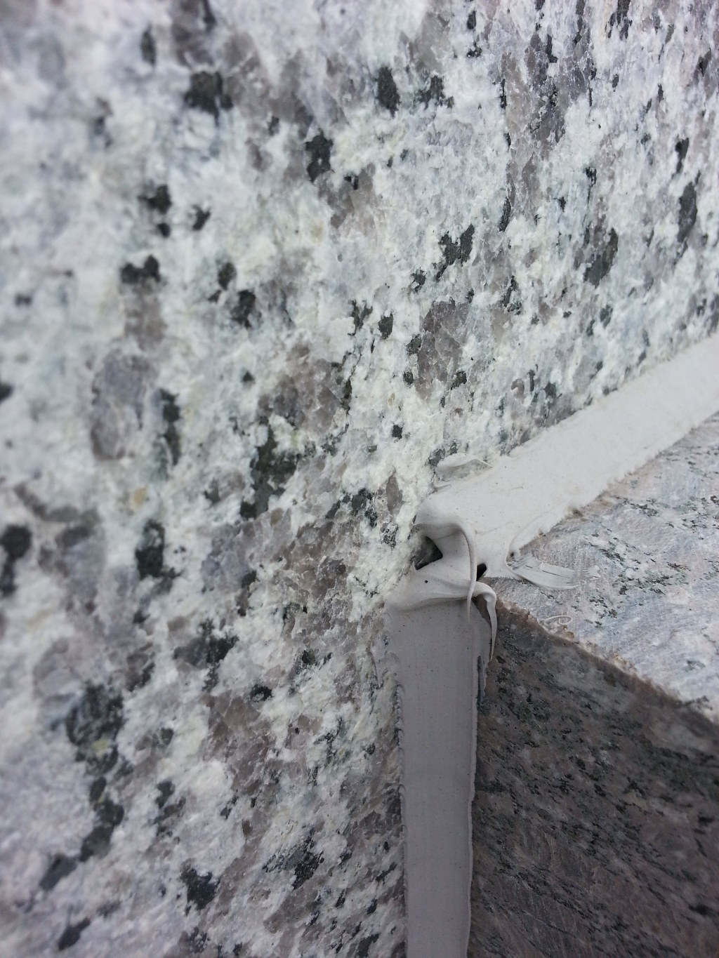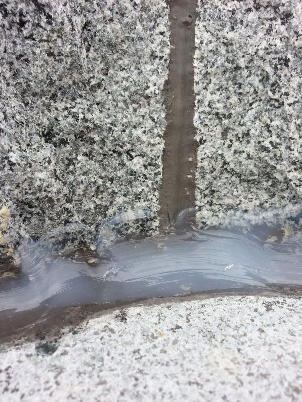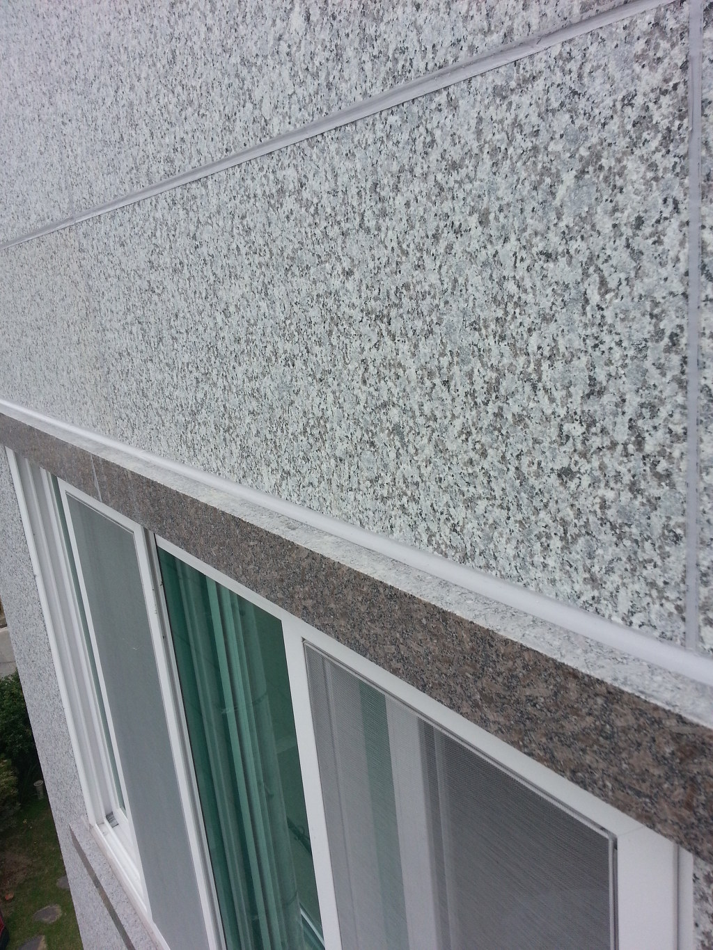 신축한지 두달정도인데 작업차량(스카이)타고 올라가 보니 비오는날 오전에 석재가 비에젖은 상태에서 실리콘 시공을해서 석재 판지쪽에 물과 실리콘 혼합으로 구멍이 많이 보였습니다..구멍난 석재 표면은 칼로 V 커트후 재실리콘처리