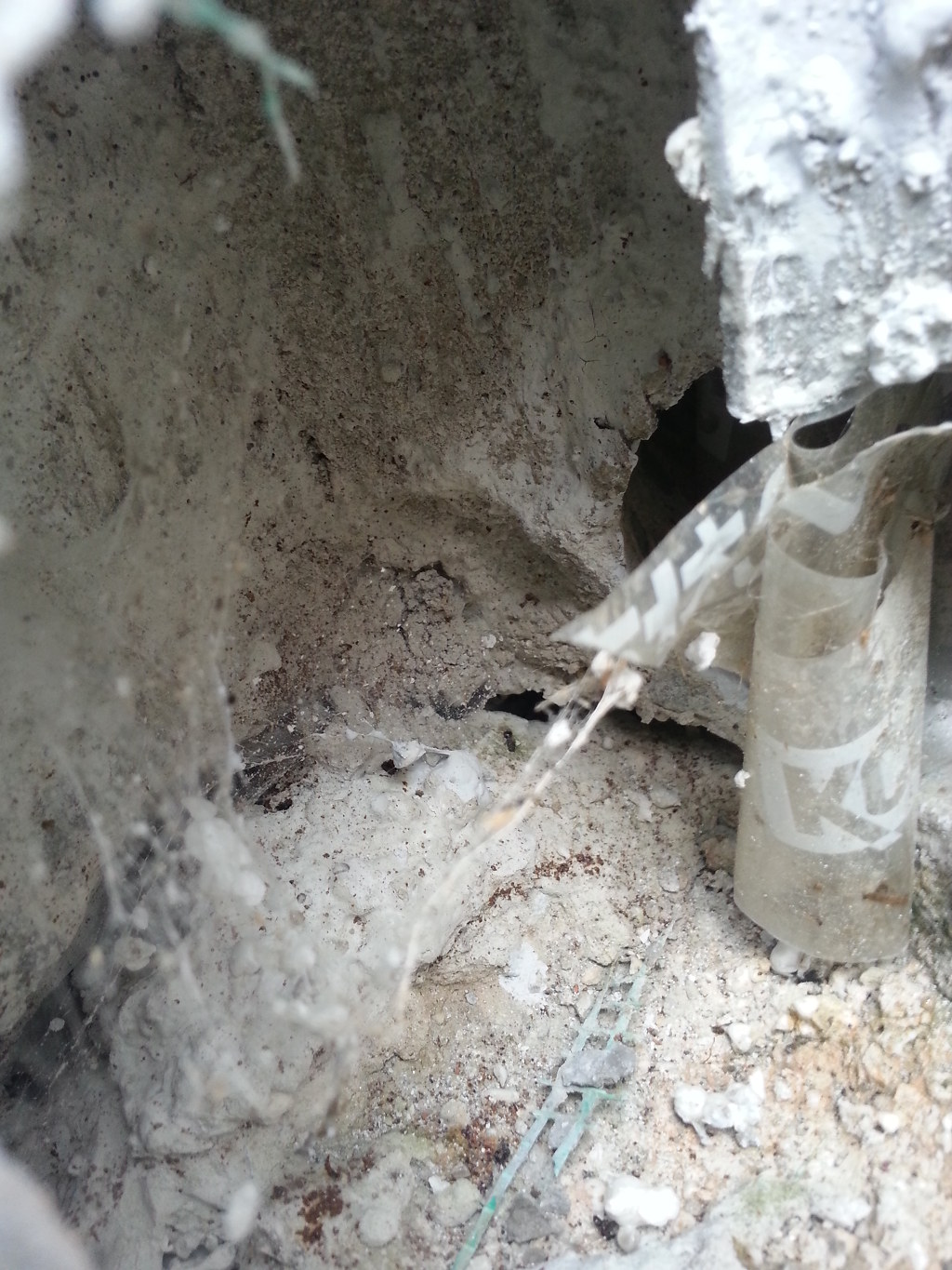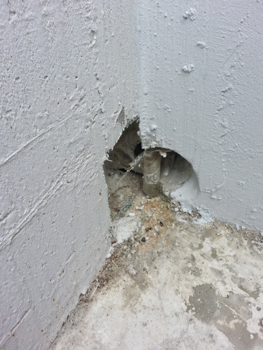 배수관인데 한쪽 공구리가 떨어져나가서 크랙이 발생 비가 오면 크랙난 곳으로 타고 드가면 아래층 천정으로 누수 돼겠죠?