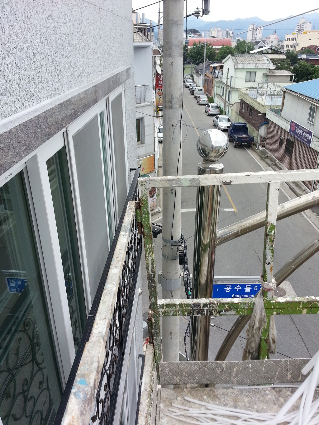 난간대 하부 실리콘이 빠져서 실리콘처리...
