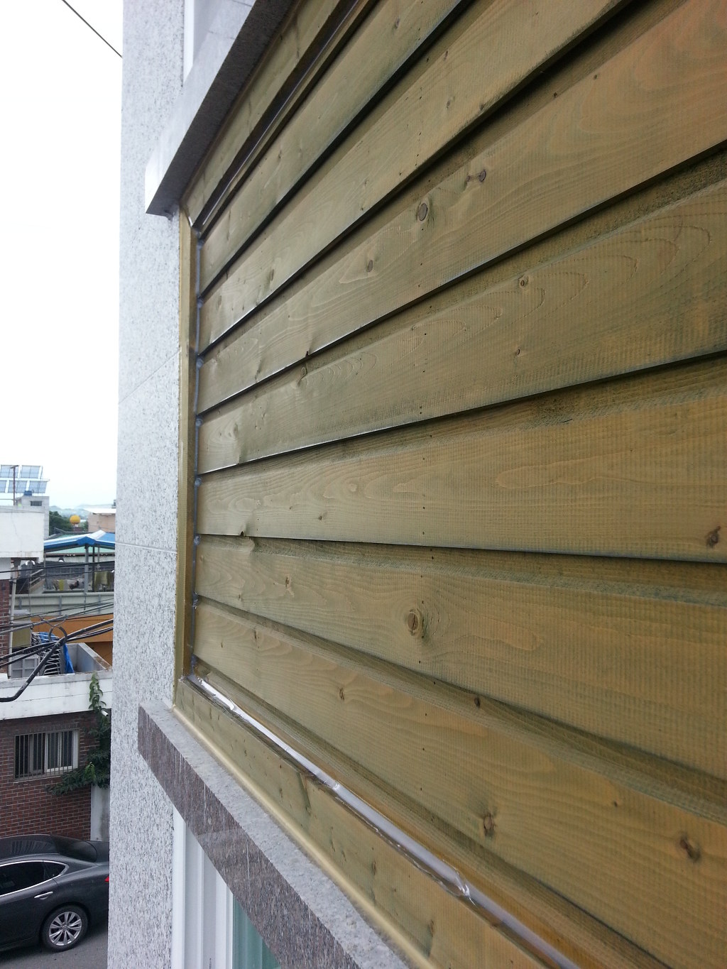 거실창 발코니 나사부분도 빠짐없이 실리콘처리해야함(석재를 드릴로 관통해서 발코니를 끼워놓은 상태라 100로 누수,)