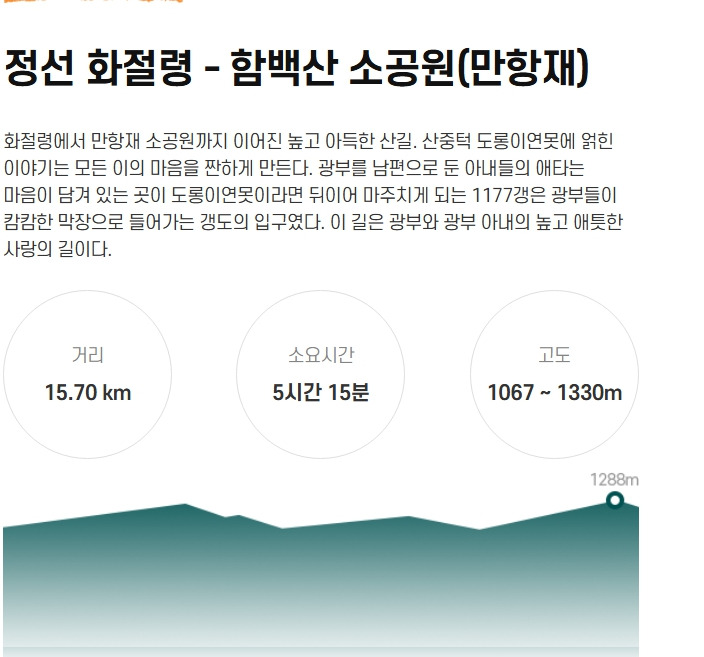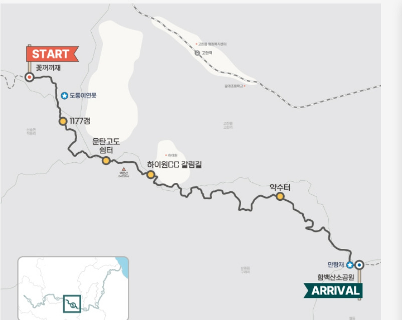 만항재→약수터→하이원CC갈림길→운탄고도쉼터→1777갱→꽃꺼끼재