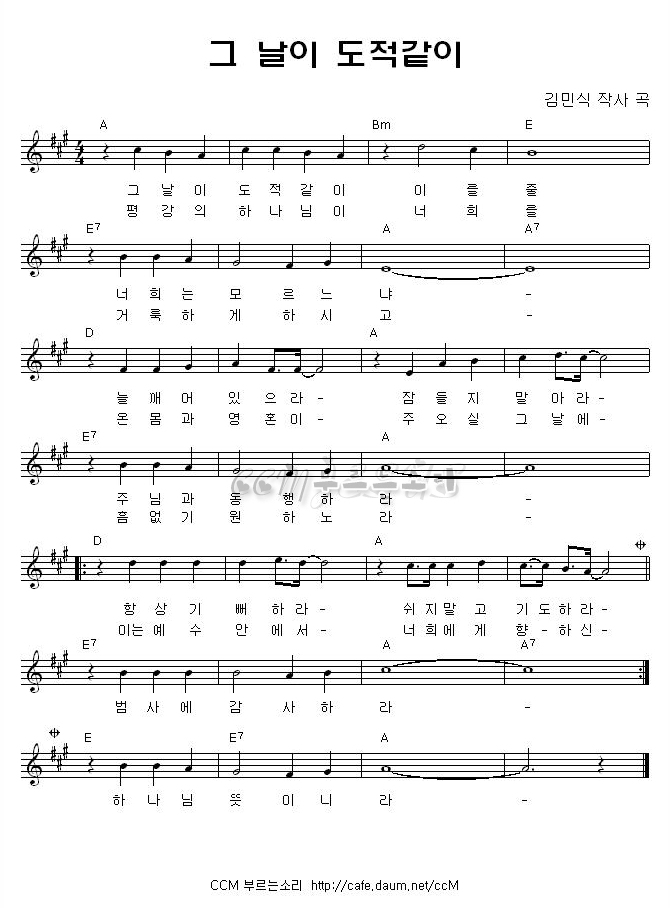 (CCM추천) 그 날이 도적같이 _ 김민식 곡 A코드 악보