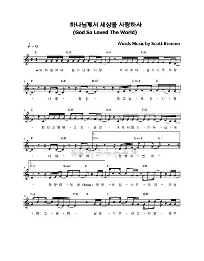 하나님께서 세상을 사랑하사 _ 스캇 브레너 작사 곡