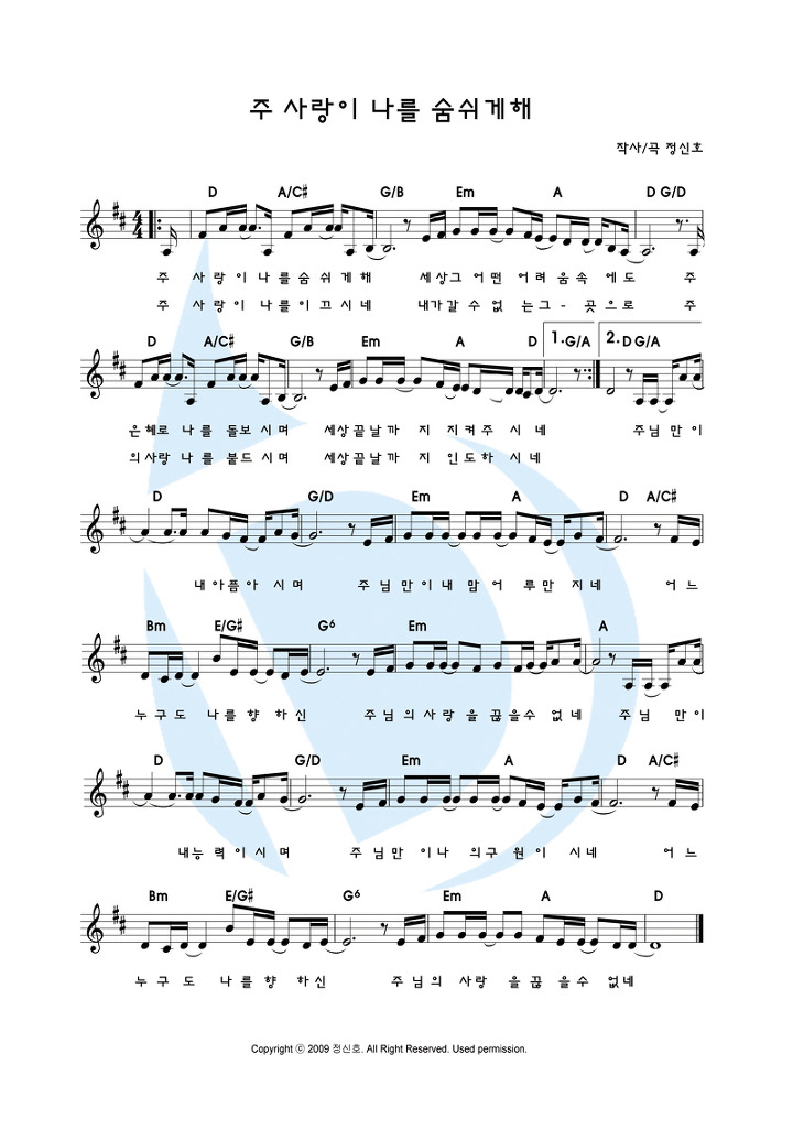 주 사랑이 나를 숨쉬게 해 _ 정신호 작사 곡