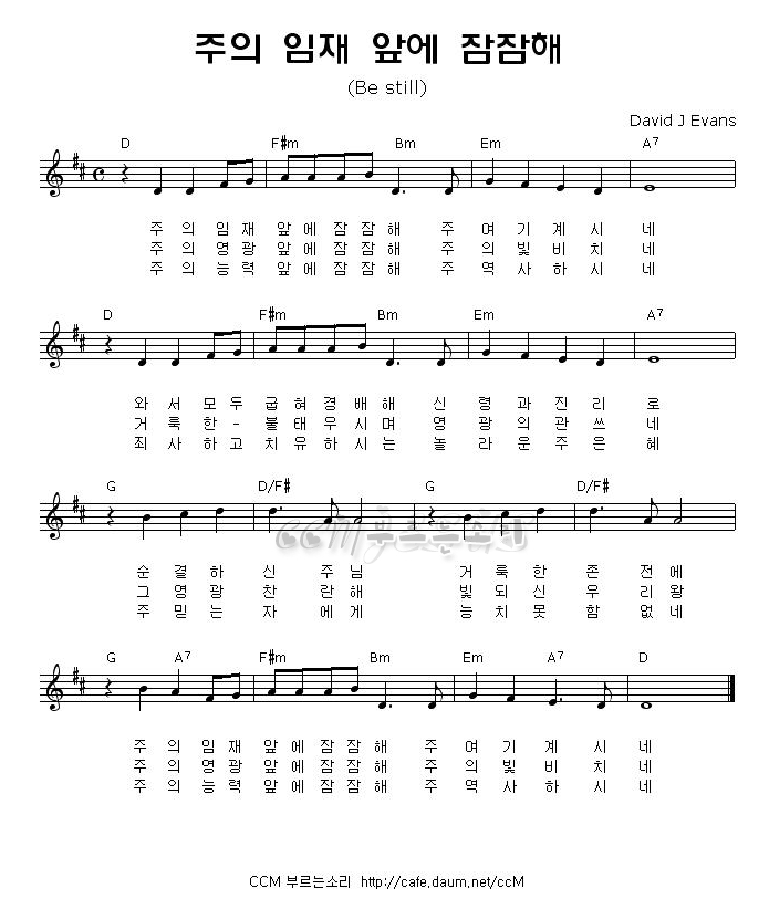 주의 임재 앞에 잠잠해 / 찬양악보