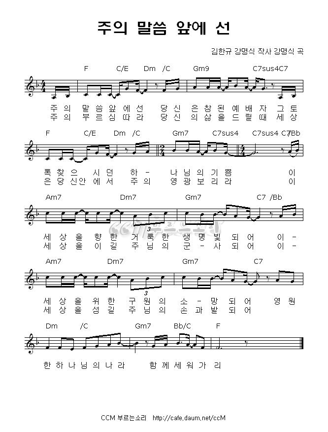( CCM무료듣기 / CCM무료악보 / 어노인팅 CCM / 주의 말씀 앞에 선 악보 )