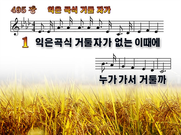 새찬송가 PPT악보 495장 / 익은 곡식 거둘 자가 없는 이때에 누가 가서 거둘까