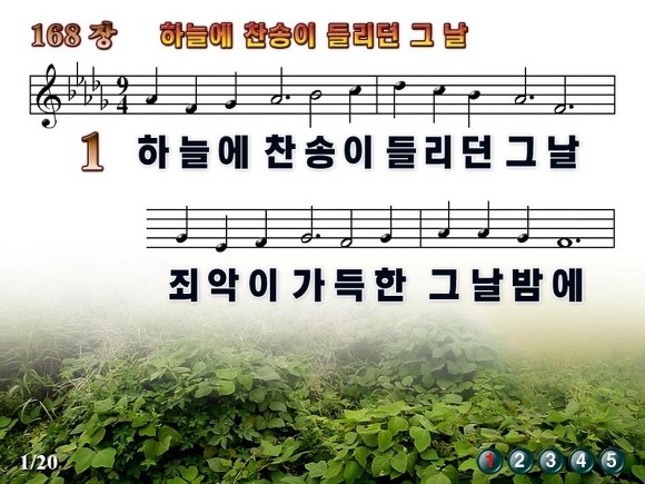 새찬송가 PPT악보 168장 / 하늘에 찬송이 들리던 그날 죄악이 가득한 그날 밤에
