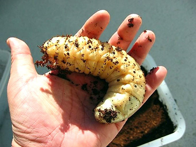 손바닥 위의 말령 유충. 20cm가 넘는 거구입니다