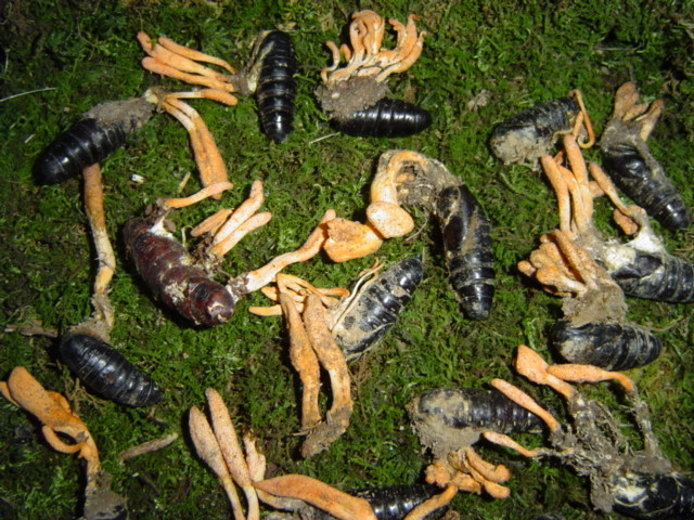 동충하초는 곰팡이의 일종인 동충하초균이 곤충의 표피를 뚫고 몸속으로 들어가 영양분을 탈취하면서 체내에서 균사를 대량 번식하게 되면 곤충은 더 이상 견디지 못하고 죽게 되고 시간이 경과하면서 사체는 딱딱하게 굳어진다.