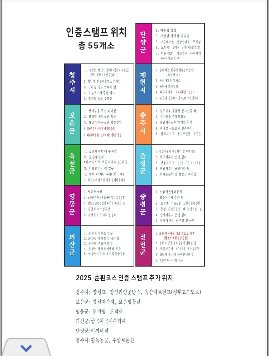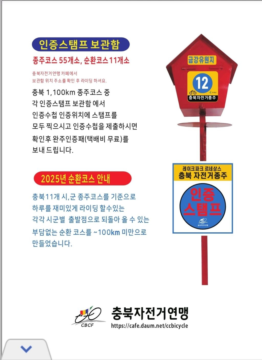 올해는 아직 추진이 안되고 있지만 도장찍는 재미와 충북의 아름다운 라이딩을 해보시기 바랍니다~^^ -
