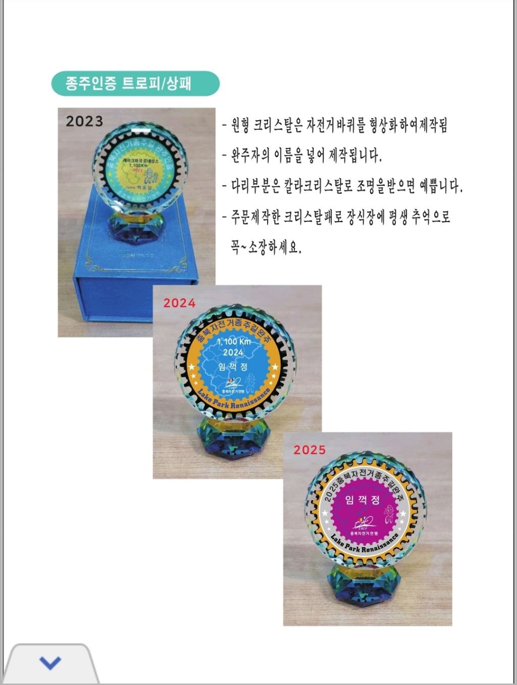 -. 11개 시군 코스를 60% 이상 완주 하시면 완주상패 드립니다.