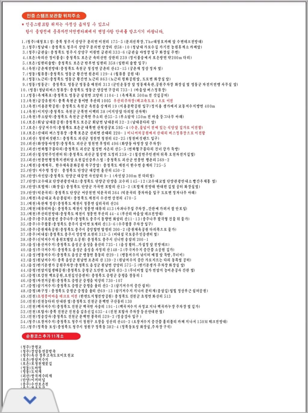 현재 11개 인증수첩배포함 설치,신설인증함 설치 코스안내 설치되었습니다