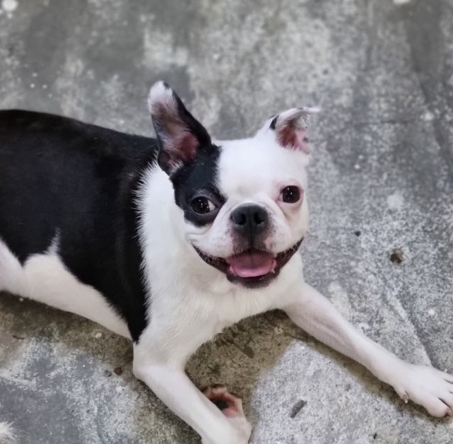 예쁜 바둑무늬를 가지고 해맑게 웃는 미소가 천사 같은 보스턴테리어 먹지에요.
