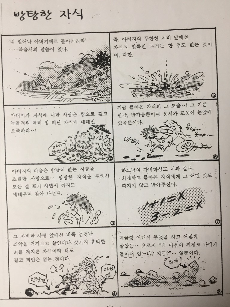 겨자씨 한알(방탕한 자식) 작성자바위|작성시간20.03.18|조회수22 목록 댓글 1 글자크기 작게가 글자크기 크게가 다음검색 현재 게시글 추가 기능 열기 북마크 공유하기 신고 센터로 신고 댓글 댓글 1 댓글쓰기 답글쓰기 댓글 리스트 작성자운로/지요셉 | 작성시간 20.03.19 신부님은 화가이신가요?어떻게 만화로 주님의 말씀을 이렇게 전할 수 있습니까.한마디로 말해서 달인입니다. 댓글 전체보기