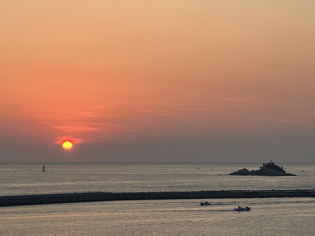 오늘따라 바람이 거세다. 뭍에서 바다로 향하는 강풍이다. 자연히 물결은 밖으로 향한다. 방파제나 해안가의 파고는 따라서 낮았다.
