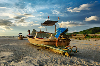 초라한 나룻배 한 척이 쓰러질 듯 놓여있는 모습이