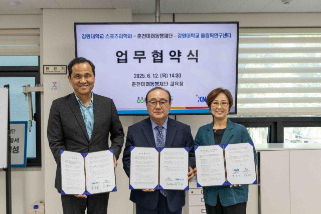 (재)춘천미래동행재단, 강원대 스포츠과학과, 올림픽연구센터 등은 12일 춘천시 초고령사회 대응과 액티브 시니어 인적 자원의 지속가능한 활용을 위해 3개 기관 업무협약을 체결했다.