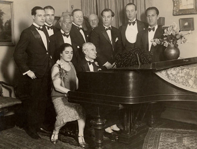1928년 자신의 생일 파티에서 피아노 앞에 앉아 포즈를 취한 라벨.