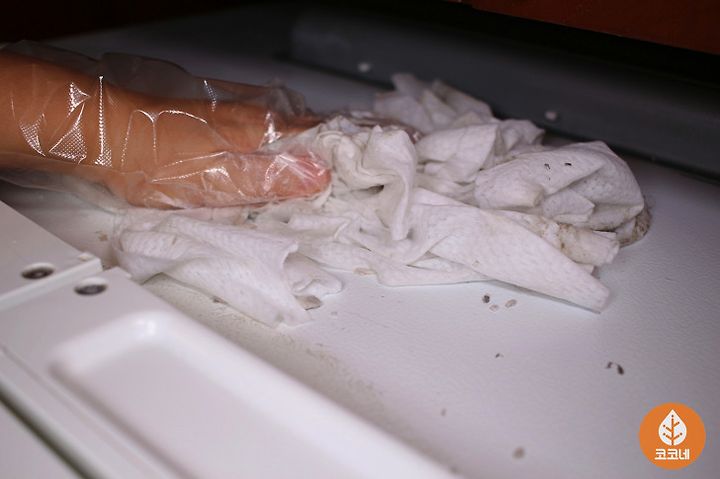 20분쯤 지나서 물티슈로 냉장고 위를 쓱- 닦아보면