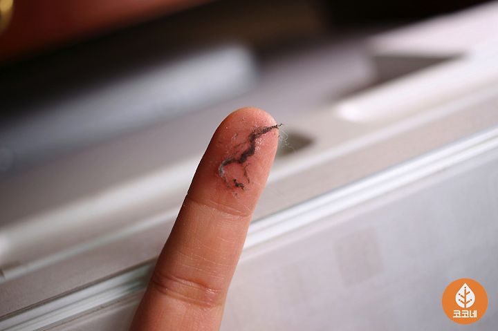 마치 손 끝에 풀로 먼지를 붙여놓은 것 같아요...