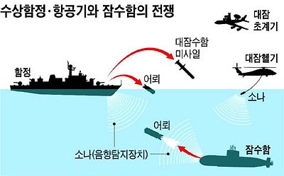 수상(水上)함정과 잠수함 간에는 평상시에도 소리 없는 전쟁이 벌어진다. 구축함이나 대(對)잠수함 항공기들은 상대국의 잠수함을 탐지하려 하고 잠수함은 이를 피해 상대국 해군기지 가까이까지 가서 정보수집 활동을 벌이기도 한다.