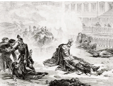 마침내 최후의 순간이 왔다. 1881년 3월 13일, 상트페테르부르크의 시가를 달리던 황제의 마차에 폭탄이 던져졌다. 폭음과 함께 코사크 호위병들이 죽고, 마부는 크게 다쳤다. 놀랍게도 나폴레옹 3세가 선물한 방탄 마차 덕분에 황제는 무사했다. 그러나 그는 호위병과 마부가 괜찮은지 물으며 마차 밖으로 모습을 드러냈다. 그 순간 두 번째 폭탄이 날아들었다.