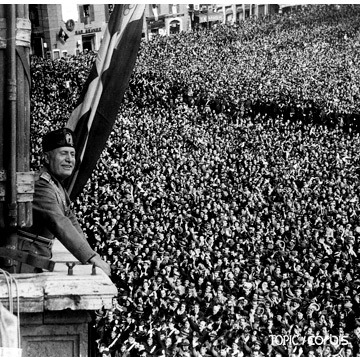 군중 앞에서 연설하려고 하는 무솔리니. | |