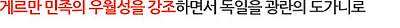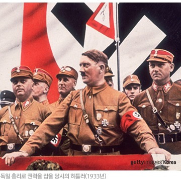 히틀러는 글라이히샬퉁, 즉 획일화 정책을 통하여 독일 국민을 광장에 모았다. 1차 세계대전 이후 패닉 상태를 헤매던 독일 경제는 호전되고 있었다. 600만 명의 실업자들은 거리를 헤매다가 대부분 군대와 직장으로 돌아갔다. 국가 경쟁력이 높아지면서 아우토반이 건설되었고, 비틀 자동차가 생산되었다. 독일은 1차 세계대전 패전 결과 자국을 옥죄던 베르사유 조약을 능멸하면서 군비를 증강해나갔다. 그러나 이웃국가들은 항의하는 흉내만 냈다. |