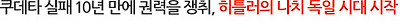 대통령 선거에서 히틀러를 누른 힌데부르크 대통령은 이미 86세의 고령이었다. 그는 젊고 강력한 독일의 지도자에게 총리라는 실질적인 권력을 넘겨줄 수밖에 없었다. 히틀러는 1923년 뮌헨에서 권력 쟁취를 위해 쿠데타를 획책하다가 투옥된 적이 있는데, 10년 만에 다른 방식으로 권력을 얻은 것이다. 총리가 된지 수년 만에 독일 국민은 히틀러에게 열광하게 되었다. 히틀러는 분명한 목표를 정해두고 총리가 되었는데, 무너진 경제를 되살리고 1차 세계대전 패전으로 잃어버린 조국 땅을 되찾고, 유럽을 포함한 러시아까지 무력으로 합병하는 것 등이었다. 거기에다 어려서부터 체질화된 광적인 반유대주의는 유대인 말살정책으로 현실화되었다.