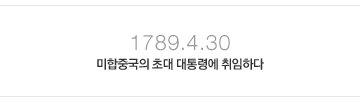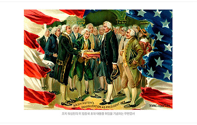 | 1789년 4월 30일 뉴욕, 미국 임시정부의 청사 페더럴 홀에서 세계 역사상 중대한 의식이 거행되었다. 미국의 초대 대통령 당선자 조지 워싱턴이 오른손을 성경 위에 올려놓았다. 뉴욕 재판소장 로버트 리빙스턴이 물었다. “당신은 미국의 대통령직을 성실하게 수행하고 미국의 헌법과 국민의 권리를 수호할 것을 맹세합니까?” 워싱턴은 대답했다. “예, 엄숙히 맹세합니다.” | |