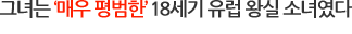 성격에 대해서만큼은 많은 사람들이 그녀가 본성이 상냥하고 친절하다고 긍정적으로 평가했다. 예쁜 용모에 착하고 상냥하며 예술을 애호하지만, 산만하고 쓰기와 읽기 능력이 부족한 편인 14살 소녀. 18세기 유럽 왕실에서 매우 평범한 한 소녀였던 셈이다.