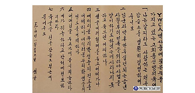 선생의 유언. 그를 간호하던 안홍팔에게 선생이 구술한 것이다. (1934년 1월 26일. 독립기념관 소장)