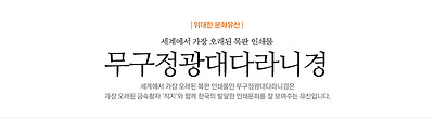 우리는 지금까지 한국이 지닌 세계적인 인쇄 문화에 대해서 많이 보았습니다. 그 선두를 달리고 있는 것은 당연히 세계최고의 금속활자 인쇄본인 [직지심체요절]입니다. 그런데 경이로운 기록이 또 하나 있지요? 세계에서 가장 오래된 인쇄물인 [무구정광대다라니경](이하 다라니경, 국보 127호)이 그것입니다. 혼란을 피하기 위해 이 두 인쇄물의 차이점을 정확히 말해보면, “직지”는 금속활자 인쇄본 중 세계 최고이고 “다라니경”은 인간이 인쇄한 것 가운데 세계 최고입니다. 물론 남아있는 것 가운데 가장 오래 되었다는 것입니다. | |