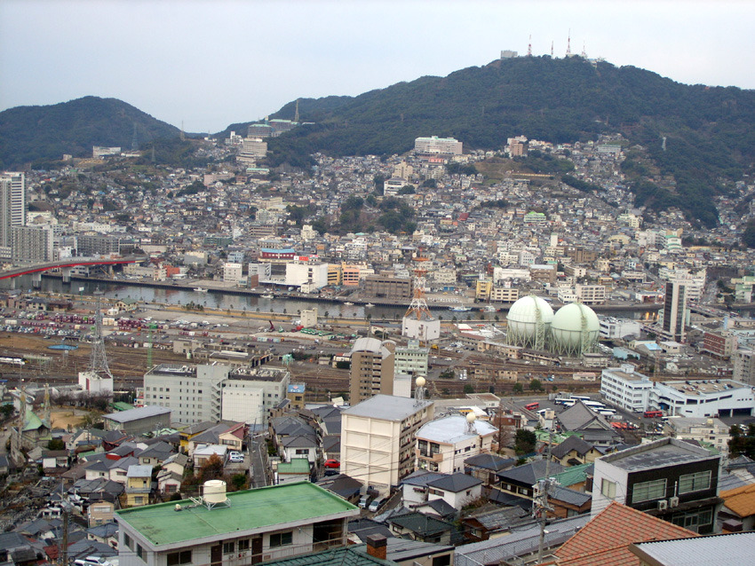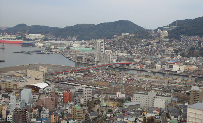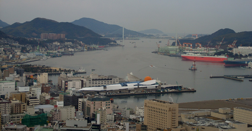 호텔 마당에서 내려다 본 나가사키 항구 전경