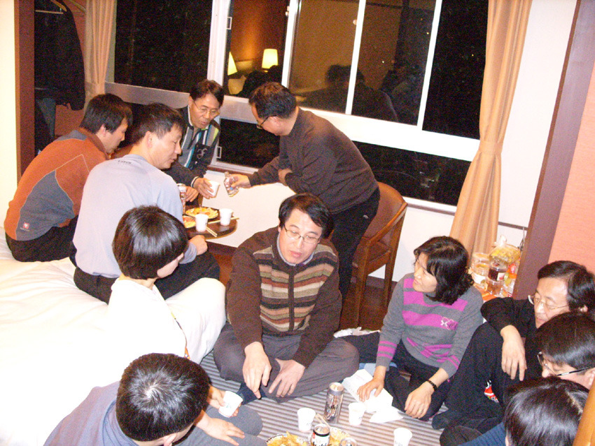 저녁을 먹고 난 뒤 담소를 나누는 우리 일행