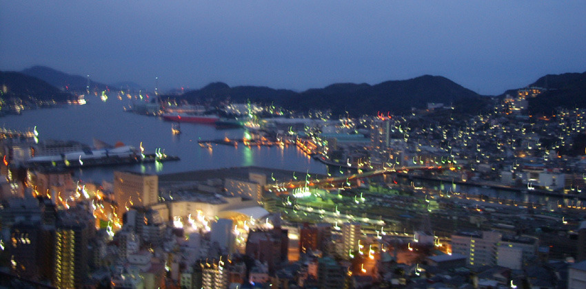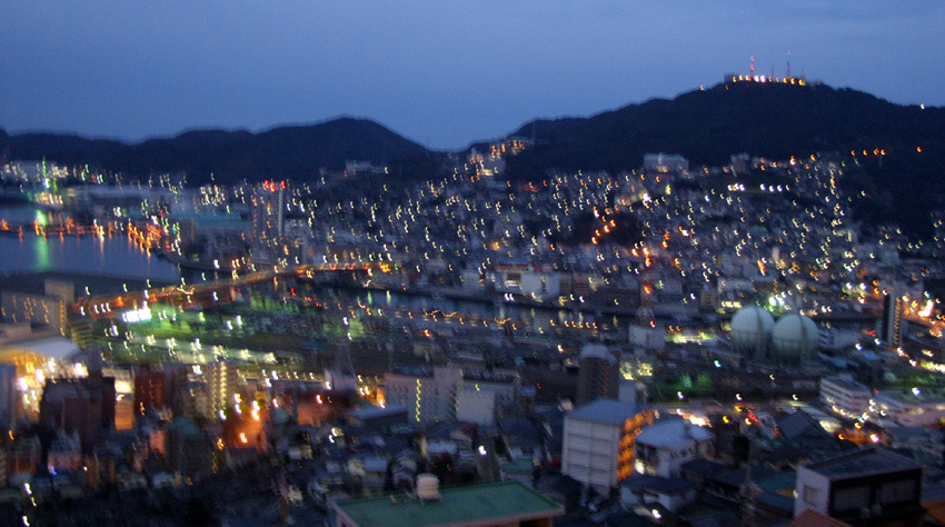 호텔에서 내려다 본 나가사키 항구 야경 - 멀리 다리도 보임