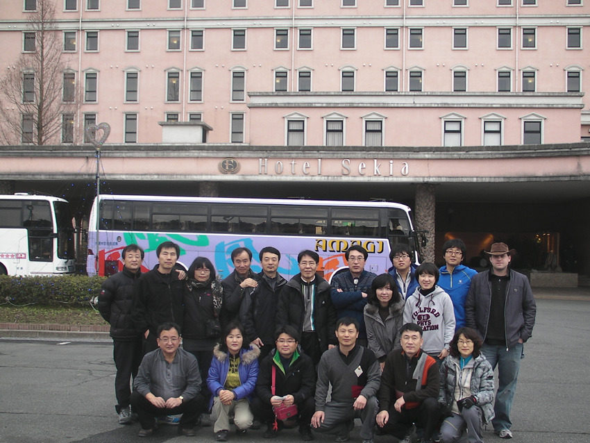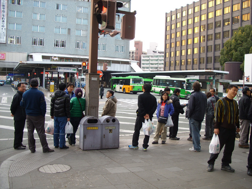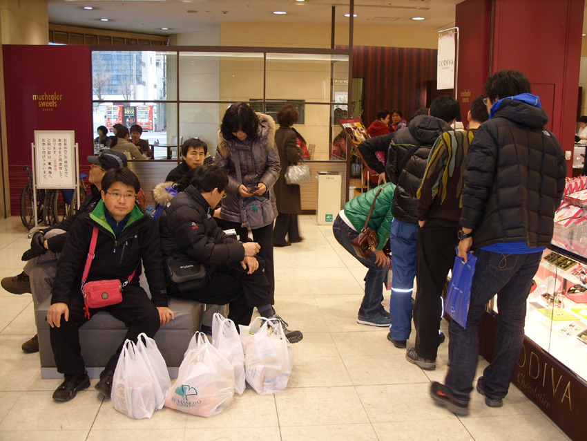 지하 수퍼에서 먹거리를 사서 봉지 봉지 가득, 일행이 오기를 기다림
