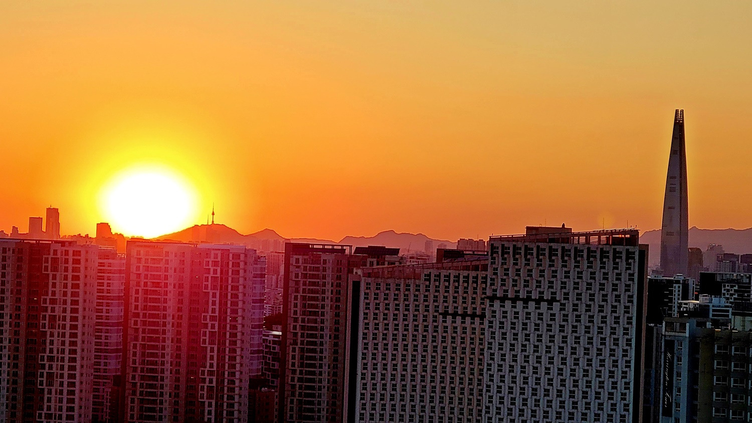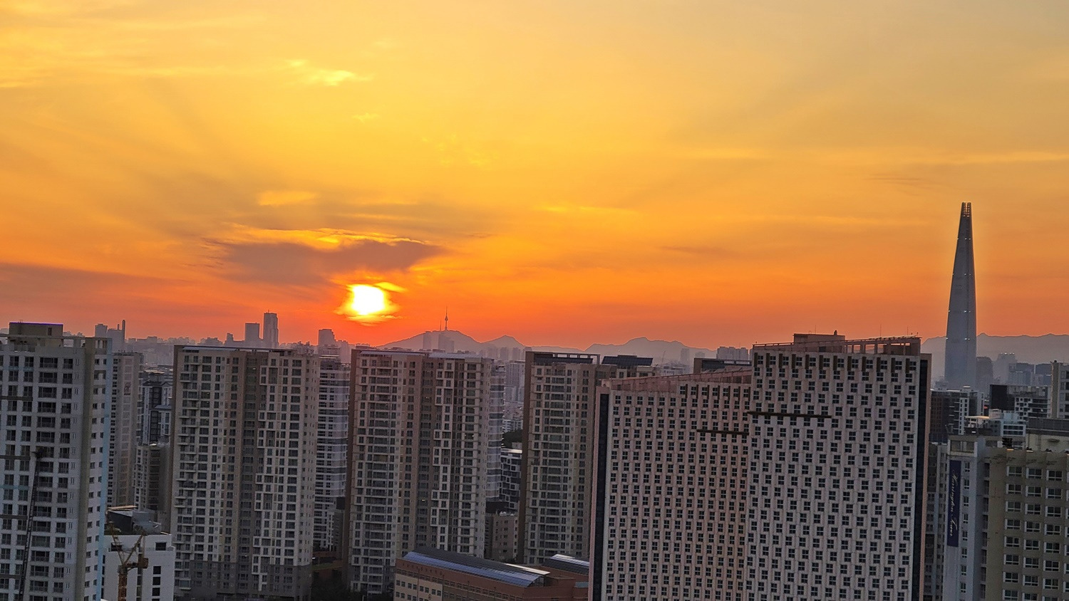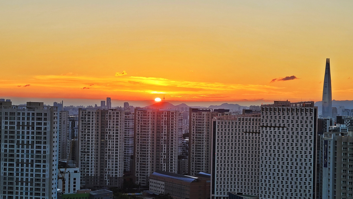 멋진 저녁노을이 아름답습니다.(2025.6.5.목.) 작성자미스터빈|작성시간25.06.06|조회수27 목록 댓글 0 글자크기 작게가 글자크기 크게가 ▲ 아파트 거실에서 바라본 아름다운 위례신도시 저녁노을(남산타워,롯데타워)▲ 여름에는 해가 길어 남산타워 곁으로 해가 넘어갑니다.▲ 위례신도시 전경▲ 거대한 태양이 남산타워곁으로 하루를 마감하고 있습니다.▲ 하늘 도화지에 태양과 구름이 멋진 풍경을 자아냅니다.▲ 어느 화가보다도 잘 그린 멋진 풍경 다음검색 현재 게시글 추가 기능 열기 북마크 공유하기 신고 센터로 신고 댓글 댓글 0 댓글쓰기 댓글 리스트
