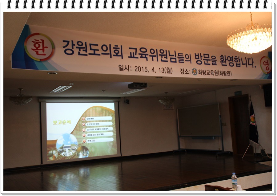 강원도의회 교육위원 화랑교육원 방문(2015.4.13.월) 작성자미스터빈|작성시간15.04.13|조회수69 목록 댓글 0 글자크기 작게가 글자크기 크게가 다음검색 현재 게시글 추가 기능 열기 북마크 공유하기 신고 센터로 신고 댓글 댓글 0 댓글쓰기 댓글 리스트