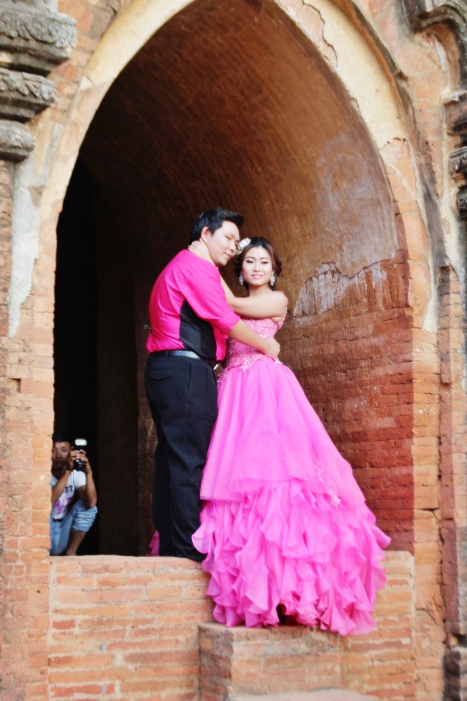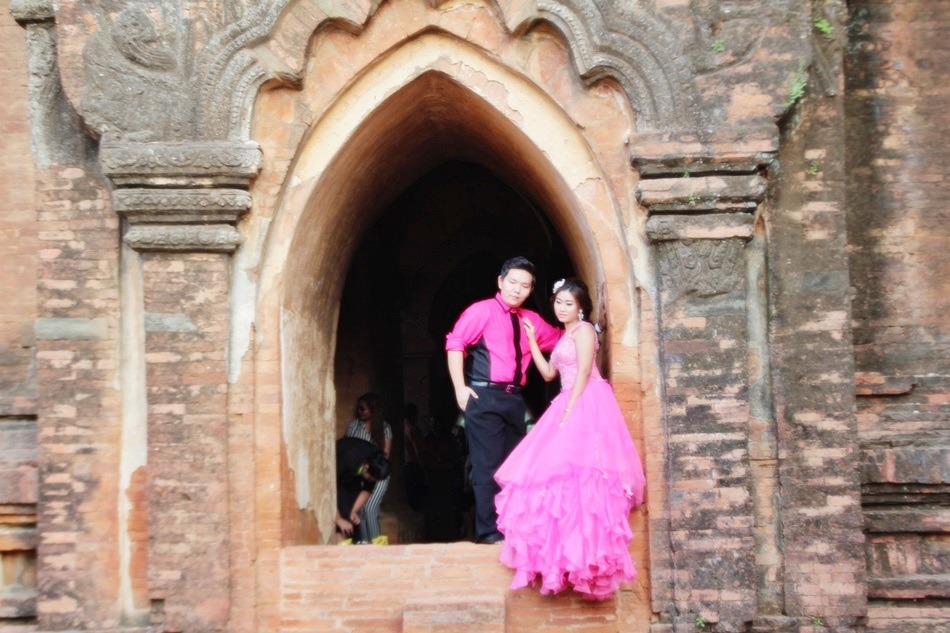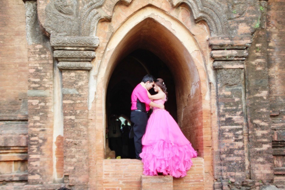 아름다운 사원이라 신혼 부부가 야외 웨딩촬영하러 왔음