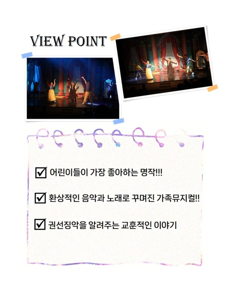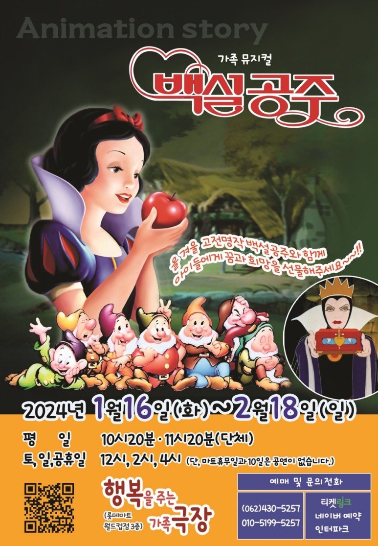 어린이 뮤지컬 백설공주 공연은 1월 16일 부터 2월 18일까지 합니다.