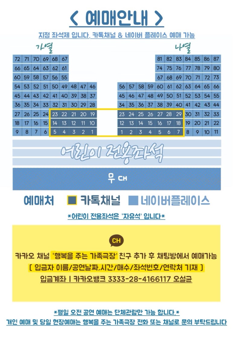 행복을 주는 가족극장은 지정 좌석제로 운영됩니다.