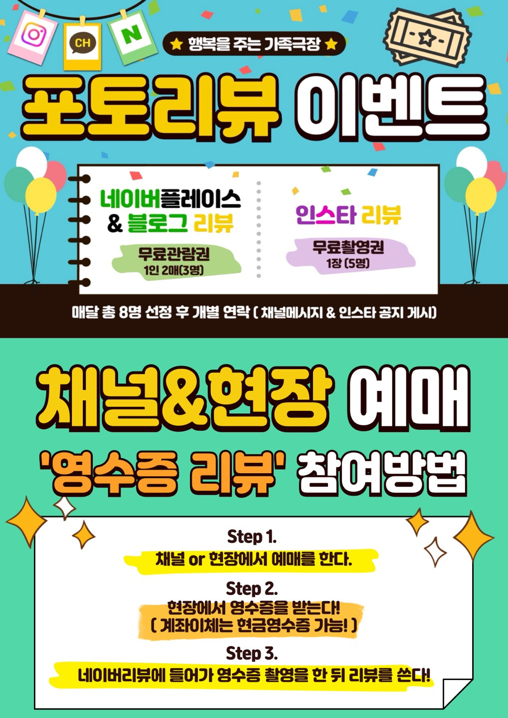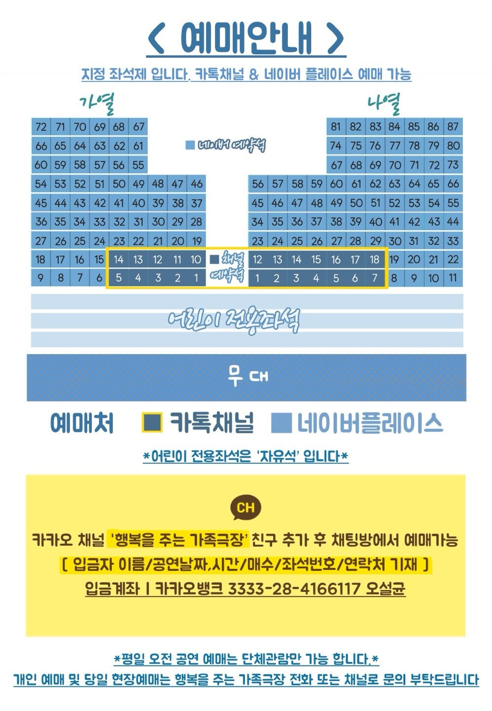 예매 방법 : 카카오 채널 채팅 / 네이버 플레이스 [행복을주는가족극장]